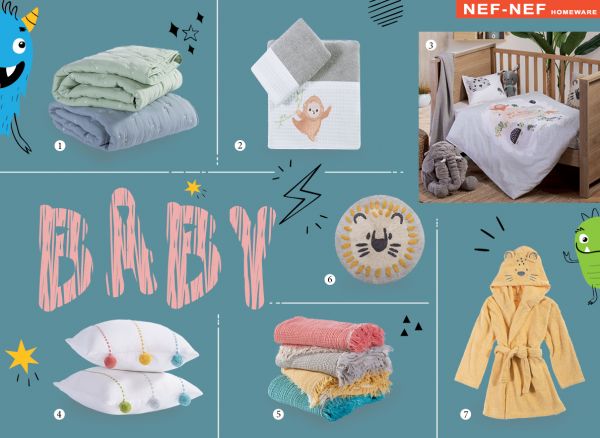 Μην ανησυχείτε: τα παραπάνω δεν μεταφράζονται σε συχνές (και ακριβές) ανακαινίσεις ή αλλαγές επίπλων. Μικρές κινήσεις αρκούν για να αλλάξουν εντελώς την εικόνα του παιδικού και του βρεφικού δωματίου και να ενθουσιάσουν τα μικρά μας. Για εμάς, η έμπνευση ήρθε ξεφυλλίζοντας τον καινούργιο κατάλογο της NEF-NEF Homeware, με τις ατέλειωτες προτάσεις για μικρούς και μεγάλους και τα υπέροχα χρώματα και σχέδια της ανοιξιάτικης και καλοκαιρινής συλλογής.