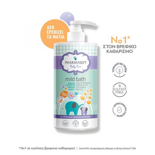 Όσο για τα προϊόντα που θα χρησιμοποιήσεις για το μπανάκι του μικρού σου, προτίμησε μία ειδική σειρά που ανταποκρίνεται στις ιδιαίτερες ανάγκες της ευαίσθητης βρεφικής επιδερμίδας και περιλαμβάνει αγνά φυσικά υλικά. Το Baby Mild Bath της Pharmasept είναι μία αξιόπιστη επιλογή με υποαλλεργική σύνθεση, ένα απαλό βρεφικό αφρόλουτρο για σώμα και μαλλιά, με το οποίο μπορείς να καθαρίσεις το μωράκι σου από την πρώτη ημέρα.