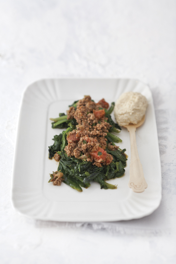 - Σερβίρουμε το σπανάκι με τον κιμά και το γιαούρτι.