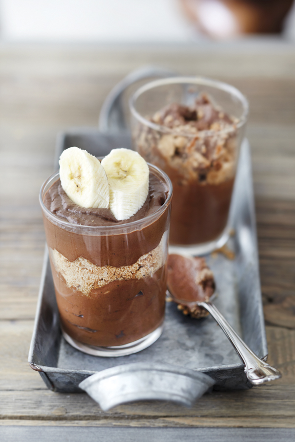 - Τελειώνουμε με την υπόλοιπη μους, γαρνίρουμε με ροδέλες μπανάνας και σερβίρουμε.