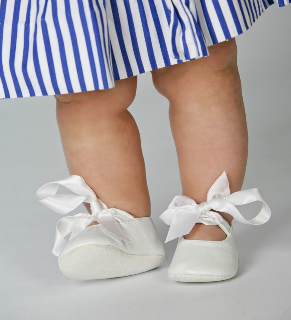 Στην αρχή είναι καλύτερο το παιδί να μάθει να περπατά ξυπόλυτο ή με καλτσούλες που έχουν πέλμα από λάστιχο για να μη γλιστράει. Αυτό επιτρέπει στην πατούσα του να γυμνάζεται και να δυναμώνει. Όταν αρχίσει πλέον να περπατά πιο σταθερά και άνετα, θα χρειαστεί να το εξοπλίσετε με ένα ζευγάρι καλά παπούτσια. Επιλέξτε ένα ζευγάρι που είναι ελαφρύ, στηρίζει το ποδαράκι του και δεν έχει πολύ σκληρή σόλα, η οποία δεν θα επιτρέπει στο πόδι να κάμπτεται. Ένα «κακό» παπούτσι μπορεί να γίνει ανασταλτικός παράγοντας στο περπάτημα ενός μωρού. Αν δεν νιώθει άνετα φορώντας το, τότε σίγουρα δεν θα του είναι ευχάριστο να περπατά κι, επομένως, θα σταματήσει να το κάνει.