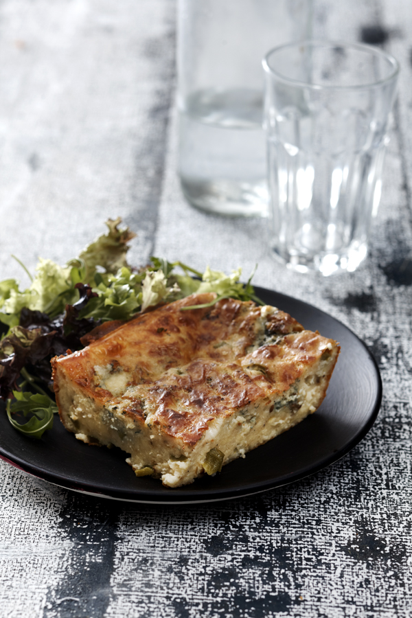 - Λαδώνουμε ένα ταψί και αδειάζουμε το μείγμα. Το ισιώνουμε, το ραντίζουμε με λίγο ελαιόλαδο και ψήνουμε την πίτα στους 200°C μέχρι να ροδίσει.