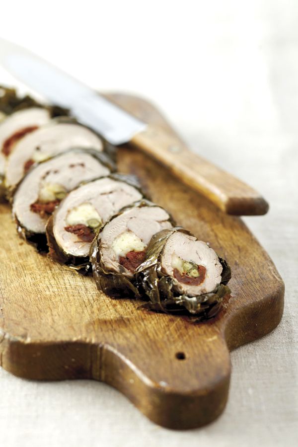 - Σε κάθε κομμάτι τοποθετούμε από 5-6 αμπελόφυλλα.