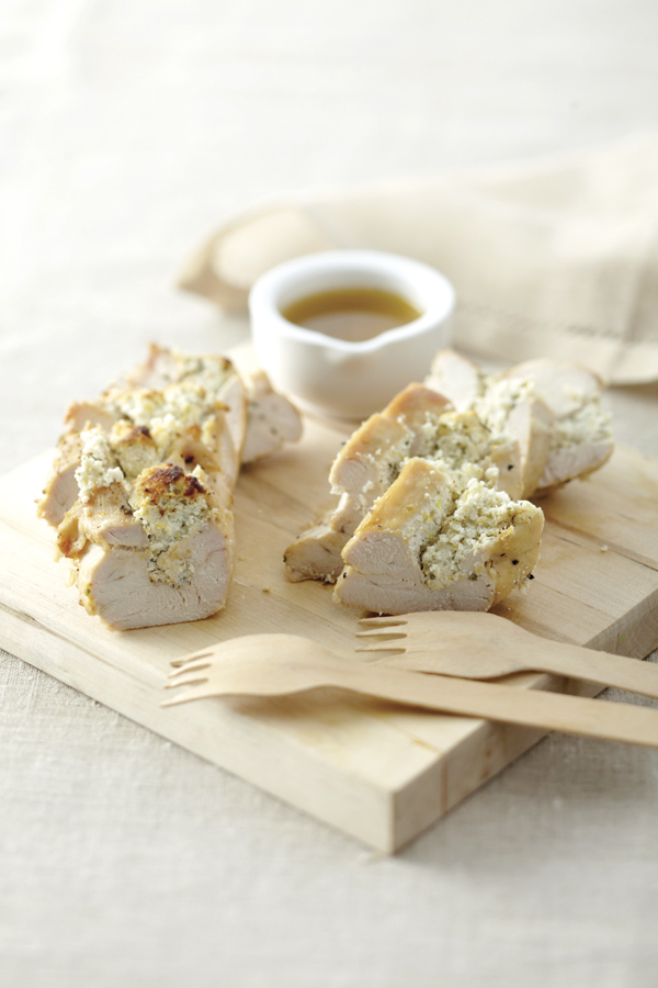 - Αλατοπιπερώνουμε τα φιλέτα, αλείφουμε το καθένα με μισή κουταλιά βούτυρο, μοιράζουμε επάνω τη γέμιση, ενώνουμε τις άκρες τους και τα κλείνουμε με οδοντογλυφίδες.