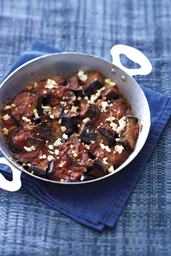 - Προθερμαίνουμε το φούρνο στους 200°C. Μεταφέρουμε τις μελιτζάνες σε πυρίμαχο σκεύος, απλώνουμε τη φέτα, πασπαλίζουμε με μαύρο πιπέρι και ψήνουμε για 10 λεπτά, ίσα να πάρει λίγο χρώμα το τυρί.