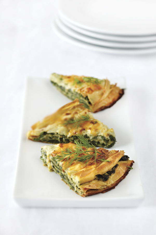 - Γέμιση: Τσιγαρίζουμε με ελαιόλαδο σε κατσαρόλα το σπανάκι μαζί με τα κρεμμυδάκια και το πράσο για 6 λεπτά. Προσθέτουμε τα αρωματικά, αλάτι και πιπέρι, και αφήνουμε μέχρι να απορροφηθούν τα υγρά.