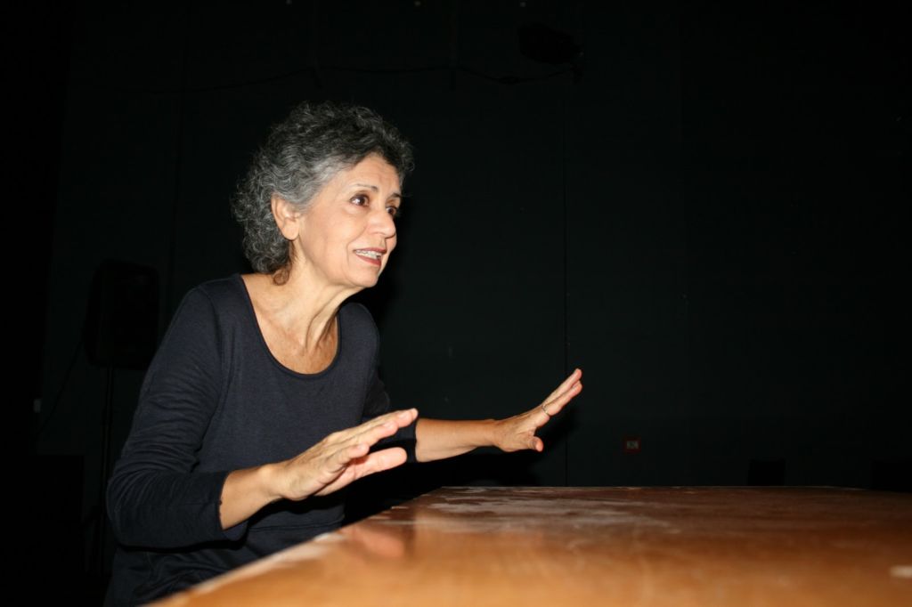 «Γύρω από ένα τραπέζι. Aκουμπώ τα παραμύθια και σας προτείνω να τα φάμε! Κερνώ κι ένα ποτήρι κρασί. Μου είναι αναγκαία η τελετουργία για να γίνει οποιαδήποτε πράξη, να γινώσει, δηλαδή, ο καρπός της και να γίνει νόημα. Ξεκινάμε από τα στοιχειώδη: τον κύκλο, το σώμα, τον λόγο. Ελπίζω η κόκκινη κλωστή να συνδέσει…»