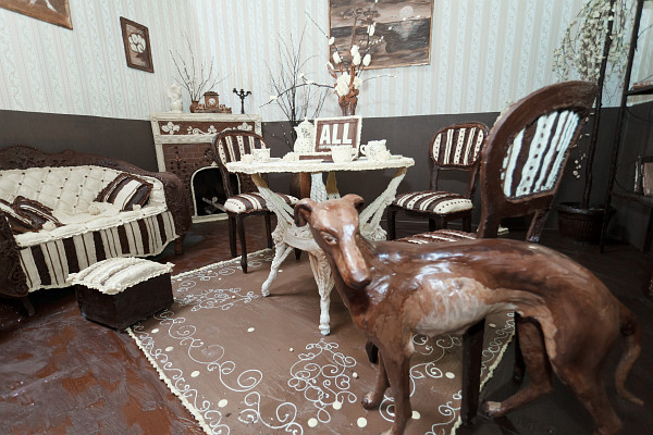 Η Έλενα Κλίμεντ είναι μια καλλιτέχνης από τη Λευκορωσία που πριν λίγες μέρες παρουσίασε το πιο… γλυκό της έργο! Ένα ολόκληρο δωμάτιο με καρέκλες, τραπέζια, τζάκι, ανθοδοχεία, συρτάρια, φλιτζάνια και διακοσμητικά αντικείμενα, όλα φτιαγμένα από σοκολάτα! Για να ετοιμαστεί χρειάστηκαν 2 μήνες προετοιμασίας και 2 εβδομάδες εντατικής δουλειάς προκειμένου η σοκολάτα να πάρει τη μορφή των αντικειμένων που αποτελούν το δωμάτιο.