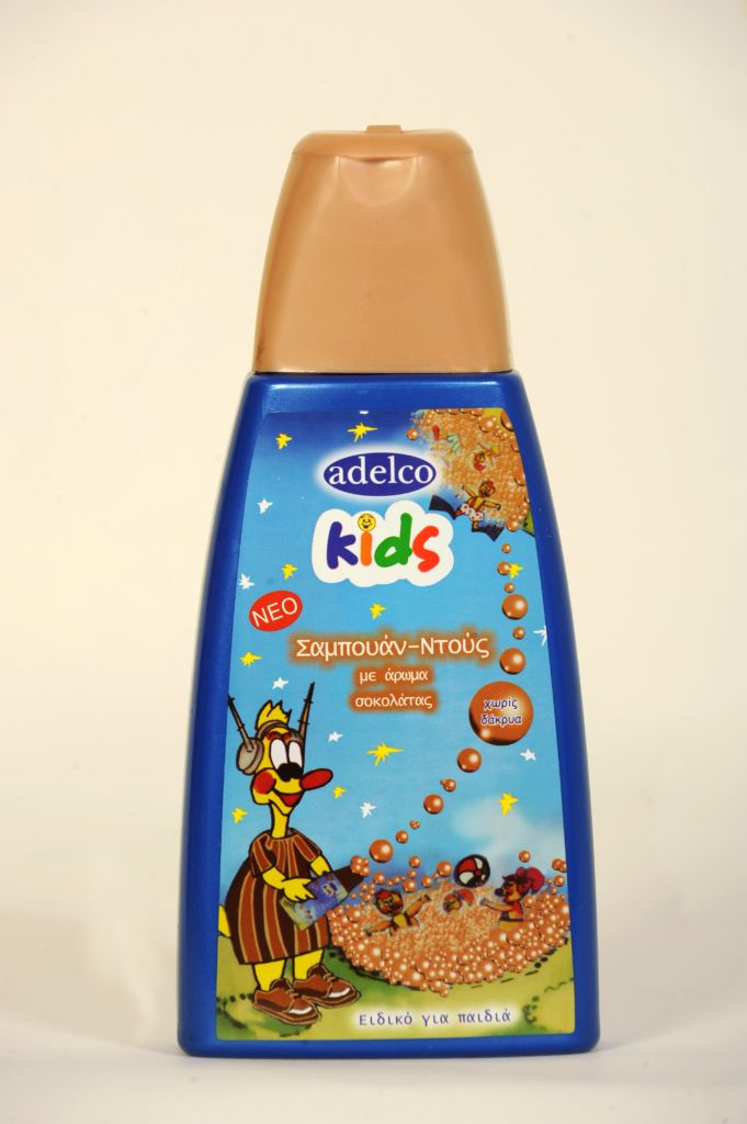 ADELCO KIDS Σαμπουάν – Ντους, Ντους για μαλλιά και σώμα / και Σαμπουάν – Ντους με άρωμα σοκολάτας
