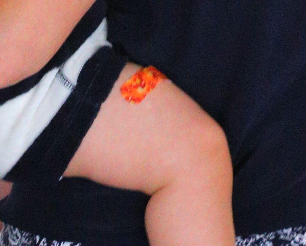 Όπως είναι ξεκάθαρο στη φωτογραφία, ο Τενεσί είχε πάει με τη μαμά του στον παιδίατρο για το πρώτο του εμβόλιο, αλλά και για την πρώτη του αιματολογική εξέταση. Τρία παιδικά τσιρότα με χρωματιστά σχεδιάκια, ένα στον αριστερό του μηρό, ένα στο δεξιό του μηρό κι ένα στο μεγάλο δαχτυλάκι του ποδιού του, το μαρτυρούν.