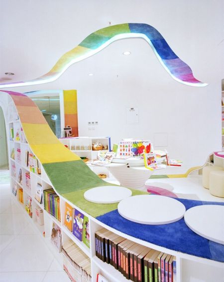 Οι SAKO Architects, φρόντισαν να είναι ακαταμάχητα ελκυστικό, με την πολύχρωμη κορδέλα του να διατρέχει όλα τα επίπεδα και να παίρνει αναπάντεχα σχήματα, εξάπτοντας την φαντασία των μικρών και αποσπώντας τον θαυμασμό των μεγάλων.