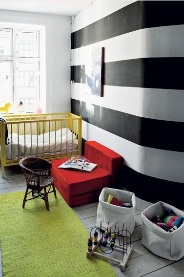 Στους τοίχους βάλτε κάθετες ρίγες αν θέλετε το δωμάτιο να δείχνει ψηλότερο, ενώ αν θέλετε να μακρύνει και να φανεί ευρύτερο, βάλετε οριζόντιες.