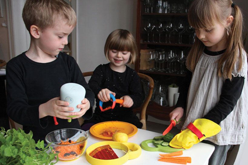 Δουλεύοντας πάνω σε αυτή τη βάση οι σχεδιάστριες Josefine Bentzen και Charlotte Skak δημιούργησαν αυτό το σύνολο εργαλείων μαγειρικής που επιτρέπει στα παιδιά την ασφαλή συμμετοχή στη διαδικασία του μαγειρέματος και ελπίζει να ενθαρρυνθεί η υιοθέτηση πιο υγιεινών τρόπων ζωής. pic source designboom