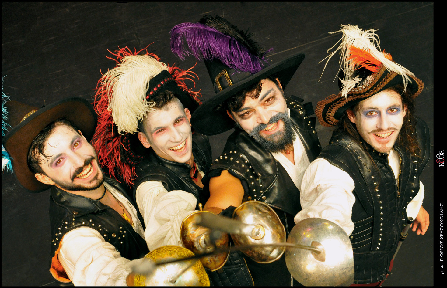«Οι Τρεις Σωματοφύλακες» τραβούν τα ξίφη τους και βγαίνουν από το θέατρο. Το ταξίδι ξεκινάει Θεσσαλονίκη-Ηγουμενίτσα-Βενετία-Άλπεις-Γαλλία-Γασκόνη… Γυρνάμε και καμιά τριακόσια χρόνια πίσω… 1625 και αρχίζουμε. Άθως, Πόρθος, Άραμις, Ντ’ Αρτανιάν.