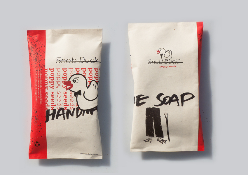 Όλα ξεκίνησαν με μερικές «εξαγριωμένες» πάπιες σε έναν ελαιώνα, πολύ μεράκι και έναν vegetarian… O Βασίλης Ντούρος αποφάσισε πως είχε έρθει η ώρα να μάθει όλος ο κόσμος για τον εκκεντρικό χαρακτήρα αυτών των «snob» παπιών που τον «συνόδευαν» με τις φωνές τους στη δουλειά κάθε μέρα! Ένα ωραίο παπιγιόν, καθαρές γραμμές, φρέσκο design και το χαρακτηριστικό “snob-duck evil look”…. και τα μοναδικά Snob Duck σαπούνια έγιναν πραγματικότητα (duck-free, όπως αρμόζει στην περίσταση)! Τα Snob Duck είναι 100% χειροποίητα σαπούνια, από τη λήψη μέχρι τη συσκευασία. Για τη δημιουργία τους χρησιμοποιούνται μόνο τα πιο αγαθά συστατικά: έξτρα παρθένο ελαιόλαδο (από τον ελαιώνα του Βασίλη), ελληνικά βότανα και φρούτα, ελληνικό μέλι και πολλή αγάπη! Τα σαπούνια κατασκευάζονται με τη λεγόμενη «ψυχρή» μέθοδο και το βάρος τους κυμαίνεται από «πάπια σε πάπια» (it’s nature)! Διατίθενται σε περιορισμένες ποσότητες στα φαρμακεία. Υ.Γ. Τα Snob Duck σαπούνια δεν υπόσχονται ότι μπορούν να γυρίσουν το χρόνο πίσω, να καθαρίσουν συνειδήσεις, να θεραπεύσουν ή να κάνουν μαγικά και άλλα ελπιδοφόρα πράγματα. Είναι αυτό που είναι: 100% ελληνικά χειροποίητα σαπούνια – και είναι τα καλύτερα!