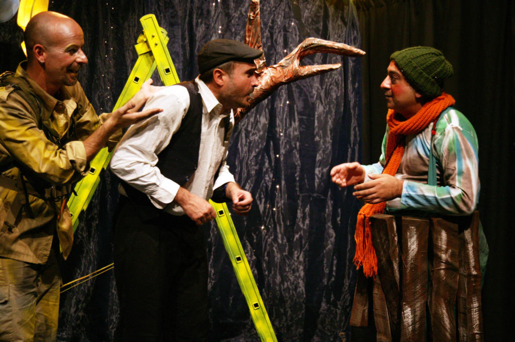 Ο Μπόμπο, ο αφελής και ευκολόπιστος ήρωας του έργου, αποφασίζει να κόψει τα δέντρα για να φτιάξει φράχτες που θα τον προστατέψουν από έναν μεγάλο μπελά που πλησιάζει.Για κακή του τύχη όμως ο κόσμος σταματάει να γυρνά και έτσι ο Μπόμπο μαζί με το Φεγγάρι ταξιδεύουν μέχρι το σκοτεινό βουνό, την σιωπηλή θάλασσα και τον αδιαπέραστο ουρανό για να βρουν το μυστικό που θα τον κάνει να γυρίσει ξανά. Οι ήρωες θα βρεθούν μπροστά σε μεγάλα αινίγματα. Ποιο είναι το μυστικό του βωβού μάστορα; Τι σημαίνουν τα τρία μήλα; Ποιο είναι τελικά το μαγικό που κάνει τον κόσμο να γυρνά;Μετά από πολλές περιπέτειες και με την βοήθεια τριών ζώων και του αινιγματικού μάστορα, το μυστικό αποκαλύπτεται. Αρκεί ένα μήλο να μοιραστεί στην μέση για να ξαναρχίσει ο κόσμος να γυρνά και να επιστρέψει η Άνοιξη στην γη; Ένα παραμύθι που φωτίζει τις σύγχρονες αγωνίες μας με χιούμορ και τρυφερότητα και προσεγγίζει την ανάγκη για επικοινωνία με έναν πρωτότυπα αισιόδοξο τρόπο. Μια ιστορία που αποδεικνύει ότι μπορεί μια δύσκολη συνθήκη να γίνει αφορμή για μια καινούρια αρχή. Θέατρο Φούρνος, Μαυρομιχάλη 168, Αθήνα, τηλ.: 210-6460748, εισιτήριο: 8€