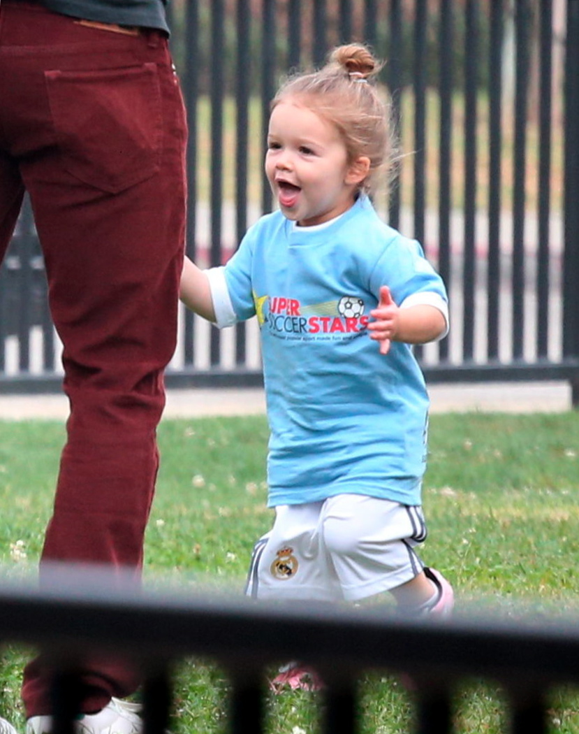 Είναι ένα από τα πιο γλυκά, χαριτωμένα και στυλάτα μωρά της σόουμπιζ… Και όπως δείχνουν τα πράγματα, είναι κι ένα ανερχόμενο ποδοσφαιρικό ταλέντο! Η μόλις δύο ετών Χάρπερ, κόρη του Ντέιβιντ και της Βικτόρια Μπέκαμ, δείχνει ήδη ιδιαίτερη προτίμηση στο ποδόσφαιρο και, όπως παραδέχεται και ο πατέρας της, είναι πολύ καλή! Η Χάρπερ λατρεύει να παίζει μαζί με τα τρία μεγαλύτερα αδέρφια της που επίσης ασχολούνται σοβαρά με το συγκεκριμένο άθλημα -μάλιστα ο 14χρονος Μπρούκλιν φημολογείται ότι έχει δεχτεί πρόταση από την ακαδημία ποδοσφαίρου της Mancheseter United. Ο περήφανος μπαμπάς δήλωσε σχετικά σε πρόσφατη συνέντευξή του: «Δεν ξέρουμε ακόμα εάν θέλει να ακολουθήσει τα χνάρια μου ή όχι. Πάντως η αλήθεια είναι ότι της αρέσει πολύ να παίζει ποδόσφαιρο με τα αδέρφια της». Στις φωτογραφίες βλέπετε τη Χάρπερ στον πρώτο της «αγώνα» με τα αδέρφια της, τον περασμένο Οκτώβριο, όπου μάλιστα έβαλε και ένα γκολ, το οποίο πανηγύρισε δεόντως, τρέχοντας με τα χεράκια ανοιχτά προς την εξέδρα, για να το χαρεί μαζί με τους γονείς και τους φίλους της που την παρακολουθούσαν!