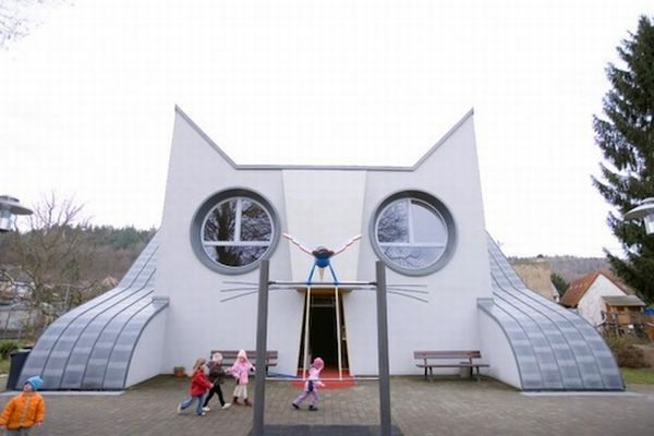 Τα πιτσιρίκια στο Karlsruhe της Γερμανίας, πρέπει να είναι πολύ ενθουσιασμένα που πάνε καθημερινά στο σχολείο τους. Ο λόγος; Για τον παιδικό σταθμό– νηπιαγωγείο Le jardin d’enfants Die Katze σε σχήμα γάτας που σχεδίασε ο διεθνούς φήμης καλλιτέχνης Tomi Ungerer σε συνεργασία την αρχιτέκτονα Ayla-Suzan Yöndel. Η στάση της γάτας είναι τέτοια που προδίδει τις προθέσεις της… είναι έτοιμη να «επιτεθεί» στο θήραμα της, που δεν είναι άλλο από τα παιδιά.