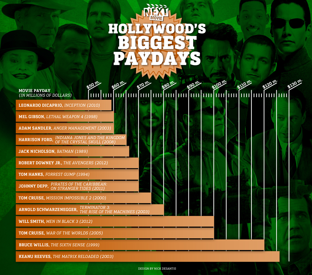 Είναι αλήθεια ότι στο Χόλιγουντ συμβαίνουν τα πιο «εξωφρενικά» πράγματα… Και, φυσικά, δεν είναι τυχαίος ο λόγος για τον οποίο όλοι αυτοί οι διάσημοι ηθοποιοί της παγκόσμιας σοουμπίζ αποκαλούνται σταρ! Για να μπορούν να ακολουθούν αυτό τον εξωπραγματικό για όλους εμάς -τους κοινούς θνητούς- τρόπο ζωής, με τα υπερπολυτελή σπίτια, τα πανάκριβα αυτοκίνητα, τις εντυπωσιακές εμφανίσεις, τις αμέτρητες υπηρέτριες και νταντάδες, εννοείται ότι αμείβονται και με εξωπραγματικά ποσά. Και η Σάντρα Μπούλοκ ανήκει δικαιωματικά στη λίστα με τους πιο ακριβοπληρωμένους ηθοποιούς του κόσμου. Μάλιστα, η διάσημη μαμά ήταν στην ευχάριστη θέση να βρίσκεται στο Νο 1 της συγκεκριμένης λίστας για τη φετινή χρονιά, με τον πρωταγωνιστικό της ρόλο στο «Gravity»! Η συμμετοχή της στην ταινία αυτή, εκτός από ένα Όσκαρ, πρόσθεσε στον τραπεζικό της λογαριασμό και το αστρονομικό ποσό των 70 εκατομμυρίων δολαρίων. Ναι, σωστά διαβάσατε! Και να φανταστείτε ότι αυτή η αμοιβή της διάσημης ηθοποιού ωχριά μπροστά στα ανείπωτα ποσά άλλων συναδέρφων της από προηγούμενα χρόνια. Ρίξτε μια ματιά στον πίνακα που ακολουθεί και θα μείνετε άφωνοι μαζί μας…