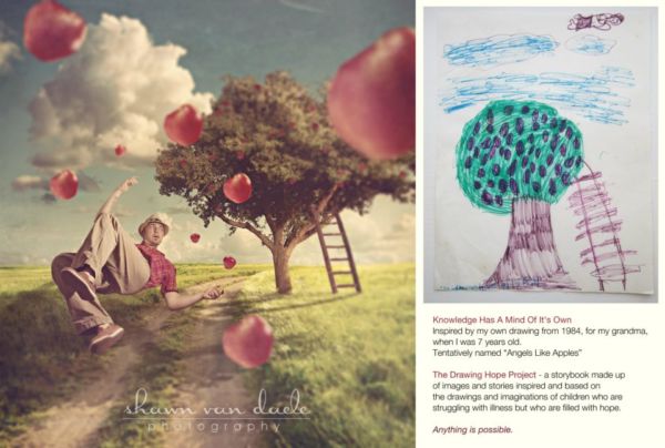 Όταν ο Shawn Van Daele ήταν 7 ετών, ζωγράφισε μια μηλιά και τη χάρισε στη γιαγιά του. Μετά από χρόνια, τη μετέτρεψε σε ολοζώντανη φωτογραφία. Τότε, όμως, δεν φαντάστηκε ότι αυτό θα αποτελούσε την αρχή για κάτι τόσο όμορφο. Τριάντα χρόνια μετά, ο κ. Van Daele εξακολουθεί να φτιάχνει υπέροχες φωτογραφίες, αλλά τον τελευταίο καιρό το έργο του του είναι κάτι παραπάνω από ιερό! Ο 37χρονος φωτογράφος από το Οντάριο του Καναδά είναι ο δημιουργός πίσω από το «Drawing Hope Project», που ζωντανεύει τη φαντασία και κάνει πραγματικότητα τις σκέψεις παιδιών που αντιμετωπίζουν προβλήματα υγείας. Τα τελευταία 2 χρόνια ταξιδεύει σε όλη την Αμερική και έχει βοηθήσει αφιλοκερδώς περισσότερα από 30 παιδιά, ενώ συνεχίζει να λαμβάνει αιτήσεις από όλο τον κόσμο.