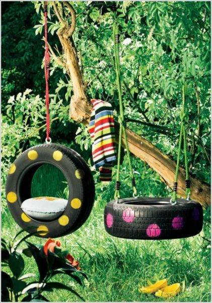 Ποιος από μας δεν έχει δει ποτέ μια κούνια από ελαστικό; Αυτή είναι η πιο γνωστή παραδοσιακή χρήση για τα παλαιά ελαστικά και μπορεί να φέρει χαρά και διασκέδαση για τα παιδιά μας! Το πρώτο πράγμα που πρέπει να κάνετε είναι να καθαρίσετε καλά το ελαστικό σας. Το βάφετε στο χρώμα επιλογής σας με ακρυλικό σπρέι λατέξ. Αφήστε το να στεγνώσει καλά και περάστε του άλλο ένα χέρι βαφής για να δώσει ένα πιο φωτεινό και έντονο χρώμα. Αφού στεγνώσει καλά…βάλτε την φαντασία σας να δουλέψει και μεγαλουργήστε. Εμείς απλά σας δίνουμε μερικές ιδέες… Μήπως τελικά είναι μια καλή ιδέα να κάνουμε ανακύκλωση και να αξιοποιήσουμε υλικά που υπάρχουν γύρω μας …