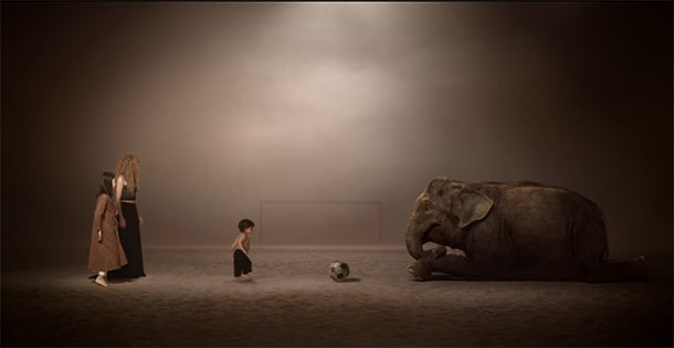 Με την προτροπή της διάσημης μαμάς του, ο μικρός πρωταγωνιστής επιδεικνύει τις ποδοσφαιρικές του ικανότητες, τρέχοντας και κλοτσώντας μια μπάλα με στόχο έναν ελέφαντα.