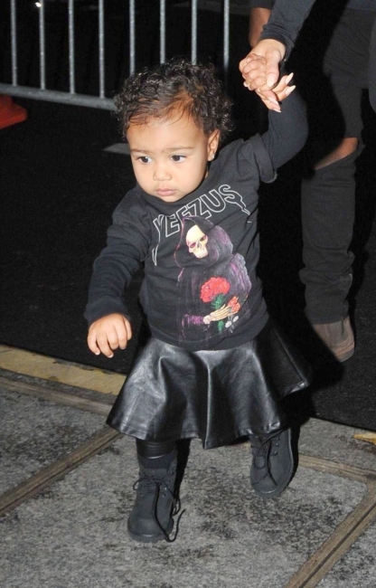 Παρόλο που τις περισσότερες φορές όλα τα βλέμματα είναι στραμμένα στην Κιμ, αυτή τη φορά την παράσταση έκλεψε η μικρή Νορθ Γουέστ. Ντυμένη με total black λουκ, φορούσε ένα t-shirt Yeezus, από την τελευταία περιοδεία του μπαμπά της, και μια δερμάτινη φουστίτσα, από την παιδική σειρά ρούχων της μαμάς της.