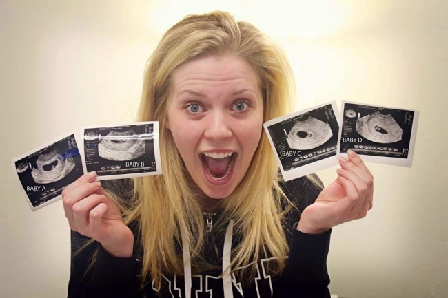Αυτό στη φωτογραφία είναι το πρόσωπό της τη στιγμή που ο γιατρός τής λέει ότι και τα δύο ωάρια που εμφυτεύτηκαν στη μήτρα της έχουν γονιμοποιηθεί και έχουν διαιρεθεί – κι επομένως περιμένει τετράδυμα!
