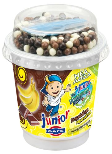Με το Junior, οι μητέρες προσφέρουν στα παιδιά τους ένα απολαυστικό και υγιεινό επιδόρπιο γιαουρτιού, με θρεπτικά συστατικά, βιταμίνη Β12 και φώσφορο, και ακαταμάχητη γεύση που θα τα κερδίσει αμέσως. Δοκιμάστε όλες τις υπέροχες γεύσεις Junior: φράουλα, μπανάνα, κεράσι, μπισκότο, καραμέλα, λευκό, μέλι και, τώρα, το νέο μοναδικό συνδυασμό Junior σοκολάτα-μπανάνα!