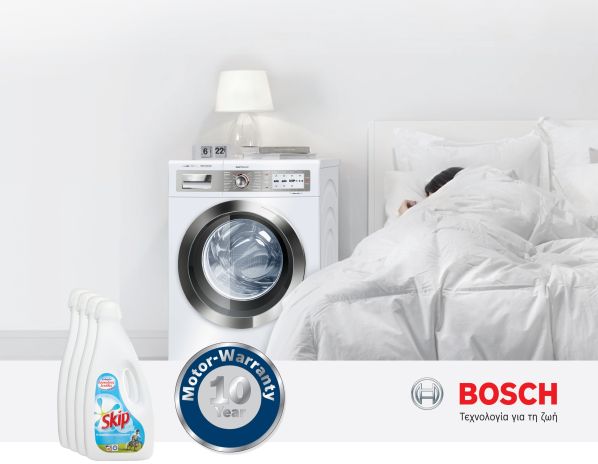 Τα πλυντήρια ρούχων Bosch με EcoSilence Drive είναι τόσο αθόρυβα… που μπορείτε να κοιμάστε στο ίδιο δωμάτιο ενώ αυτά δουλεύουν. Ο νέος κινητήρας είναι πού δυνατός, υψηλής ενεργειακής απόδοσης και αντοχής, ενώ την ίδια στιγμή είναι αθόρυβος σαν ψίθυρος.
