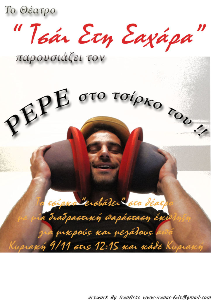 Το Τσίρκο «εισβάλει» στο θέατρο, κατεβαίνει κάτω από τη σκηνή, αφήνει στο καμαρίνι το «κοστούμι» και κοιτάει το κοινό στα μάτια! Ελάτε, μικροί, μεγάλοι, να διασκεδάσετε με μια διαδραστική παράσταση τσίρκο, με τον μοναδικό ζογκλέρ και ακροβάτη Pepe Peperonius.