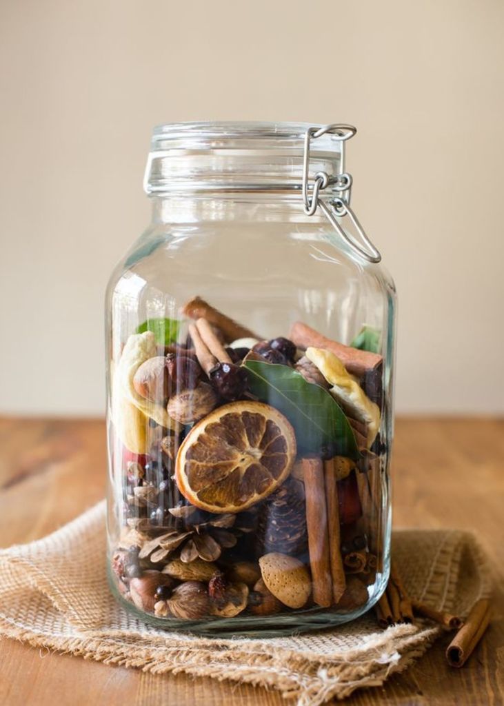 Τα ποτ-πουρί αρωματίζουν υπέροχα τον χώρο μας, χαρίζουν ζεστασιά και είναι μια τέλεια ιδέα διακόσμησης για κάθε σπίτι. Δείτε πώς να φτιάξετε μόνες σας γρήγορα και οικονομικά τα δικά σας ποτ πουρί, από φρούτα και μπαχαρικά που έχουμε σπίτι μας. Ποτ-πουρί από αποξηραμένα φρούτα Υλικά που θα χρειαστείτε Φέτες από μήλο Φέτες πορτοκαλιού, ή λεμονιού Καρύδια Ξυλαράκια κανέλας Αποξηραμένα γαρίφαλα Κουκουνάρια Αποξηραμένα cranberries Αιθέρια έλαια σανταλόξυλου, γαρίφαλου, κανέλας, πορτοκαλιού Εκτέλεση Προθερμαίνουμε τον φούρνο στον αέρα στην μέγιστη δυνατή θερμοκρασία. Επιλέγουμε τα φρούτα, που θέλουμε να χρησιμοποιήσουμε. Μπορούμε να κάνουμε ποτ-πουρί από πορτοκάλι, μήλο ή και λεμόνι. Τα πλένουμε πολύ καλά και τα στεγνώνουμε, ώστε να μην έχουν καθόλου υγρασία. Προτιμότερο είναι να τα αφήσουμε περίπου 4 ώρες, για να είναι τελείως στεγνά. Κόβουμε τα φρούτα μας σε ροδέλες. Προσέχουμε να έχουν πάχος 1 εκατοστό και ,κατά προτίμηση, να είναι οριζόντια κομμένα. Απλώνουμε λαδόκολλα σε ένα ταψί και τοποθετούμε τις φέτες πάνω. Βάζουμε το ταψί στην μέση του φούρνου και χαμηλώνουμε την θερμοκρασία στους 50-60ο C. Η όλη διαδικασία διαρκεί περίπου 3 ώρες. Κοιτάζουμε τακτικά για να γυρίσουμε πλευρά στις ροδέλες. Σε καμία περίπτωση, δεν δυναμώνουμε την θερμοκρασία του φούρνου γιατί υπάρχει κίνδυνος να καούν. Αν επιθυμούμε τα μήλα μας να διατηρήσουν το λευκό τους χρώμα, βάζουμε τις φέτες του μήλου σε ένα μπολ με χυμό λεμονιού και μια κουταλιά αλάτι, για μισή ώρα περίπου. Τις στεγνώνουμε πολύ καλά με χαρτί και τις τοποθετούμε στον φούρνο. Όταν στεγνώσουν τελείως τα φρούτα τα ανακατεύουμε σε ένα μπολ μαζί με τα ξυλαράκια κανέλας, τα αποξηραμένα γαρίφαλα, τα κουκουνάρια, τα αποξηραμένα cranberries και τα ραντίζουμε με λίγο αιθέριο έλαιο με το αγαπημένο μας άρωμα!