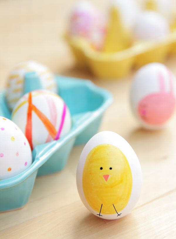 Δημιουργήστε εντυπωσιακά μοτίβα πάνω στα αυγά χρησιμοποιώντας απλά ανεξίτηλους μαρκαδόρους σε διάφορα χρώματα (τα παστέλ ταιριάζουν πολύ με το Πάσχα)!