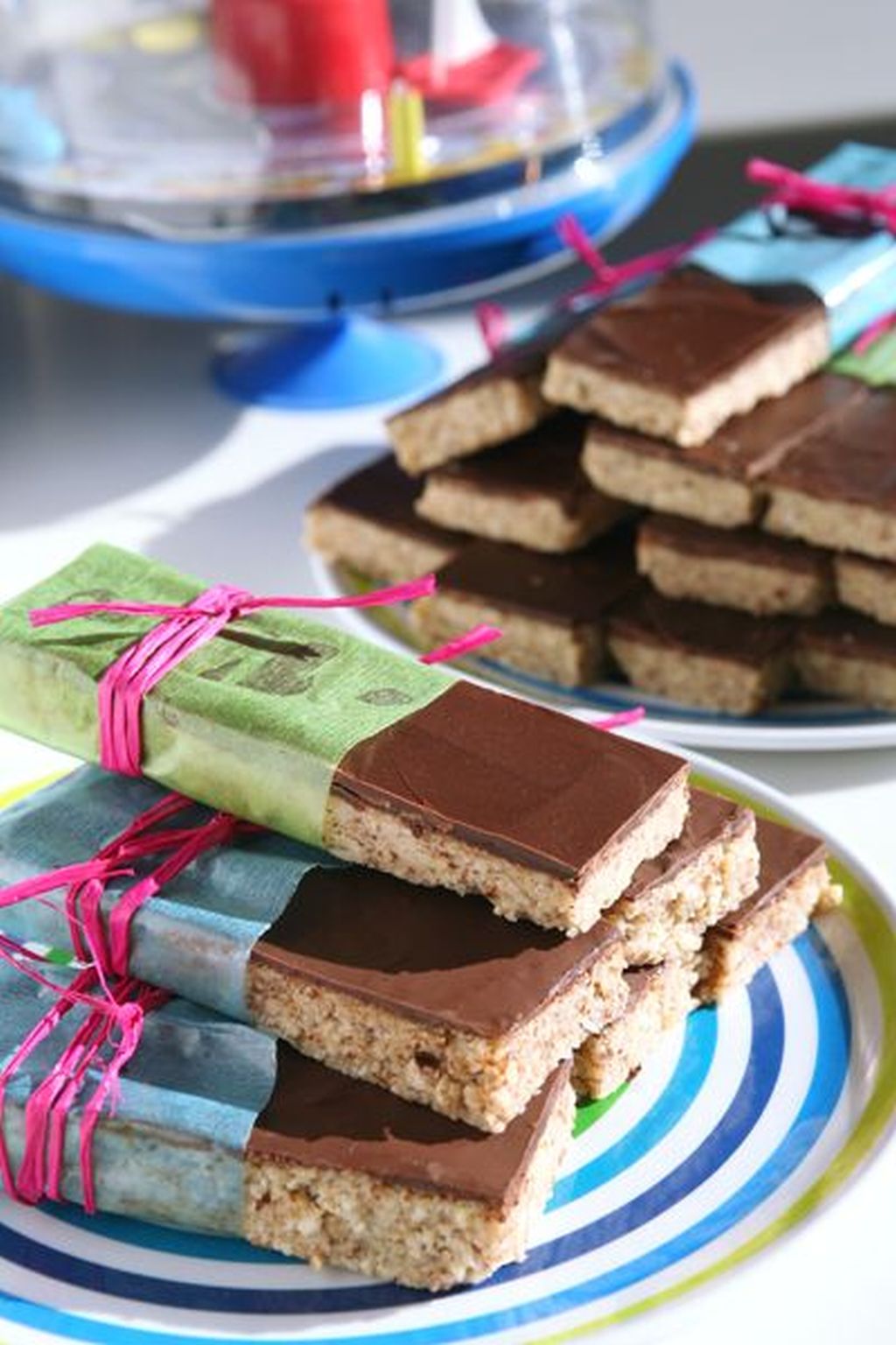 Υλικά 300 γραμμάρια σοκολάτα κουβερτούρα σε κομματάκια 1 φλιτζάνι τσαγιού μαργαρίνη (η βούτυρο αν προτιμάτε, αλλά θα γίνουν πιο βαριές) 3 κουταλιές σούπας μέλι 1 πακέτο μπισκότα πτι-μπερ 1 φλιτζάνι νιφάδες ρυζιού (δημητριακά για παιδιά) 1/2 φλιτζάνι καρυδόψιχα χοντροκομμένη 300 γραμμάρια λιωμένη κουβερτούρα (για την επικάλυψη). Μπορείτε αν θέλετε να γίνουν πιο γλυκές να επιλέξετε κουβερτούρα γάλακτος. Εκτέλεση Σε ένα κατσαρολάκι και σε πολύ χαμηλή φωτιά λιώνουμε την κουβερτούρα με το βούτυρο Αποσύρουμε από τη φωτιά και προσθέτουμε το μέλι Σπάμε τα μπισκότα με τα χέρια μας και τα ρίχνουμε στη σοκολάτα Προσθέτουμε τα δημητριακά και τους ξηρούς καρπούς και ανακατεύουμε καλά με μια σπάτουλα μέχρι να αναμειχθούν καλά τα υλικά Αδειάζουμε το μείγμα σε ένα μέτριο πυρέξ που έχουμε στρώσει πρώτα λαδόκολλα και το απλώνουμε καλά με ένα κουτάλι Τοποθετούμε στο ψυγείο για 2-3 ώρες μέχρι να παγώσει Αναποδογυρίζουμε το γλυκό στο πάγκο κοπής,αφαιρούμε την λαδόκολλα και κόβουμε με μαχαίρι τις γκοφρέτες σε μικρά μακρόστενα κομμάτια Βουτάμε το κάθε κομμάτι στην λιωμένη κουβερτούρα και τοποθετούμε σε λαδόκολλα μέχρι να κρυώσουν