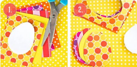 1. Εκτυπώστε και κόψτε το περίγραμμα του αυγού στο μέγεθος που επιθυμείτε. Επιλέξτε 5-6 διαφορετικά φύλλα χαρτιού με διαφορετικό μοτίβο και χρωματικούς συνδυασμούς.  Κάντε στοίβα όλα τα χαρτιά και τοποθετείστε πάνω τους το πρότυπο .