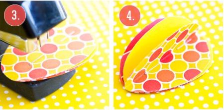 3. Ευθυγραμμίστε όλα τα χάρτινα-αυγά και διπλώστε τα στην μέση για να μπορέσετε να τα συρράψετε στο κέντρο.