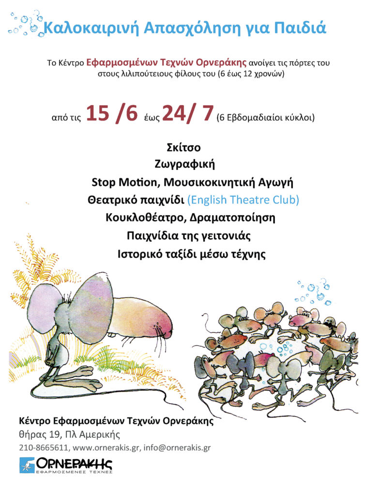 Το Κέντρο Εφαρμοσμένων Τεχνών Ορνεράκης ανοίγει τις πόρτες του στους λιλιπούτειους φίλους του με σκοπό να μετατρέψει τον ελεύθερο χρόνο τους σε μια μοναδική καλλιτεχνική-εκπαιδευτική εμπειρία κατά την διάρκεια του καλοκαιριού.