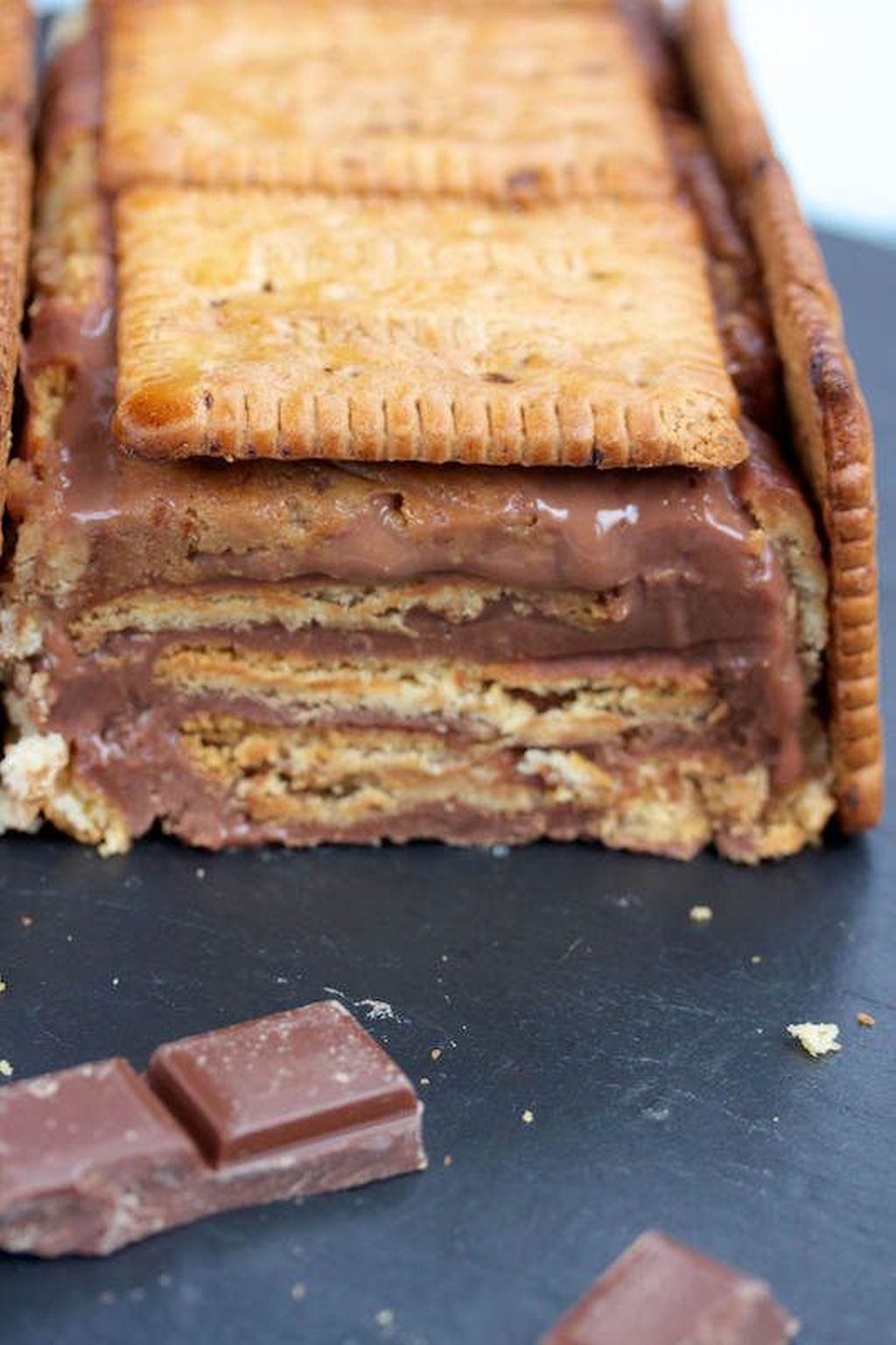 Επαναλαμβάνουμε την στρώση μπισκότα σοκολάτα και το γλυκό μας είναι έτοιμο Το αφήνουμε λίγο να κρυώσει και το τοποθετούμε στο ψυγείο για μία ώρα