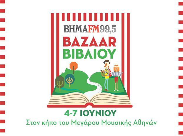 Κάνοντας πράξη το σύνθημα “Ένα βιβλίο, ένα ευρώ, για ένα καλό”, ο ΒΗΜΑ FM διοργανώνει 4ήμερο bazaar βιβλίου στον Κήπο του Μεγάρου Μουσικής. Διακόσιες πενήντα χιλιάδες βιβλία των εκδόσεων του ΔΟΛ θα διατεθούν προς ένα ευρώ το κάθε ένα και όλα τα χρήματα που θα συγκεντρωθούν, θα διατεθούν στους άπορους και τους άστεγους συνανθρώπους μας του Δήμου Αθηναίων, και θα ανακουφίσουν περισσότερες από 2.500 οικογένειες της περιοχής, που έχουν ανάγκη από τρόφιμα, ρούχα, φάρμακα και άλλα είδη πρώτης ανάγκης. Το bazaar θα λειτουργεί από τις 10 το πρωί έως τις 9 το βράδυ με στόχο φέτος να σπάσει το φράγμα του 1.000.000 ευρώ συνολικής προσφοράς των ακροατών του σταθμού στα 8 φιλανθρωπικά bazaar που έχουν πραγματοποιηθεί έως σήμερα. Παράλληλα, το καλοκαιρινό bazaar βιβλίου συνθέτουν συναυλίες γνωστών καλλιτεχνών με δωρεάν είσοδο. Πρόγραμμα συναυλιών Παρασκευή 5/6 Έναρξη 21:15 Ήβη Αδάμου Stavento Miss Chery Σάββατο 6/6 Έναρξη 20:30 Παιδική Χορωδία Σπύρου Λάμπρου Γιάννη Βασιλείου Φοίβος Δεληβοριάς Γιώτα Νέγκα-Θέμης Καραμουρατίδης Ελένη Τσαλιγοπούλου Κυριακή 7/6 Έναρξη 21:15 Δημήτρης Κόκοτας Σταμάτης Κόκοτας