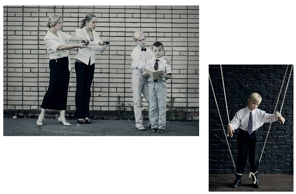Οι φωτογραφίες προκαλούν έντονα συναισθήματα: Γκροτέσκες εικόνες που αφήνουν την υπερβολή να εκφραστεί απροκάλυπτα, δίνοντας πολλές φορές ένα αποτέλεσμα αποκρουστικό. Λανθάνουσες επιθυμίες των γονιών, υπερβολική αυστηρότητα, πειθαρχία, απόλυτος έλεγχος, υπερπροστασία είναι, δυστυχώς, τα συχνότερα ψυχολογικά προβλήματα στις σχέσεις μεταξύ γονέων και παιδιών.