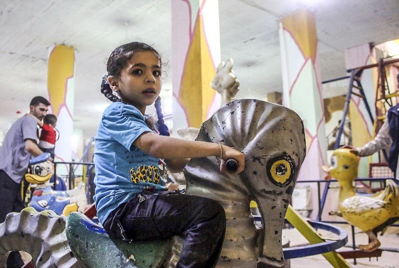 Οι σειρά φωτογραφιών που δόθηκε στην δημοσιότητα από το πρακτορείο Anadolu και που απεικονίζουν μία υπόγεια παιδική χαρά στην Δαμασκό της Συρίας είναι συγκλονιστικές. Και ακόμα πιο συγκλονιστικό και σπαρακτικό είναι το γεγονός ότι μια ολόκληρη γενιά έμαθε να ζει στα καταφύγια για να αποφύγει τις βομβιστικές επιθέσεις και την βία που καθημερινά βιώνει, μια ολόκληρη γενιά που από την τρυφερή κιόλας ηλικία έμαθε να ζει χωρίς να βλέπει τον ήλιο ή ν’ αναπνέει φρέσκο αέρα.