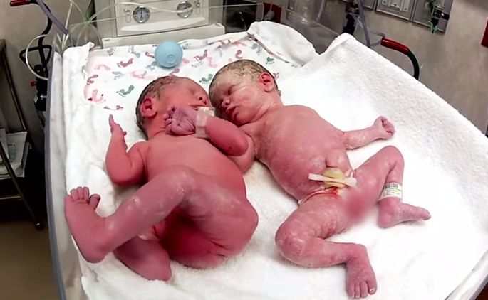 Στο βίντεο θα παρακολουθήσετε δύο νεογέννητα δίδυμα μωρά, μόλις λίγα λεπτά μετά τη γέννησή τους. Όπως θα δείτε, τα μωράκια από την στιγμή που βγαίνουν από την κοιλίτσα της μαμάς τους και αποχωρίζονται, δεν σταματούν το κλάμα. Μέχρι την στιγμή που τα βάζουν μαζί, το ένα δίπλα στο άλλο. Τώρα έχουν το ένα το άλλο και δεν χρειάζεται πια να είναι φοβισμένα… Δεν υπάρχει πραγματικά τίποτα πιο γλυκό.