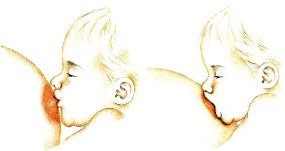 Αν το νεογέννητο μωρό είναι σωστά τοποθετημένο στο στήθος(δεξιά εικόνα), η μητέρα δεν αισθάνεται κανέναν πόνο, εκτός ίσως από τις πρώτες μέρες που μπορεί να αισθάνεται μια μικρή ενόχληση. Στην περίπτωση που η θηλάζουσα αρχίσει να πονάει κατά την έναρξη ή την διάρκεια του θηλασμού, είναι απαραίτητο να διακόψει τον θηλασμό βάζοντας το μικρό της δάκτυλο στο πλάι του στόματος του μωρού, ώστε αυτό να αφήσει ήπια το στήθος της μητέρας του και εκείνη να προσπαθήσει να το επανατοποθετήσει με σωστό τρόπο λίγο μετά. Το μωρό είναι τοποθετημένο σωστά όταν: