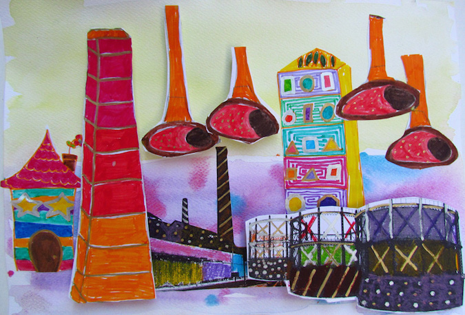 Παιδιά 3-12 ετών περιηγούνται μαζί με τους συνοδούς τους στο παλαιό εργοστάσιο φωταερίου, εμπνέονται απ’ αυτό και παίρνουν τα πινέλα τους για να ζωγραφίσουν μικρές κεραμικές γλάστρες.