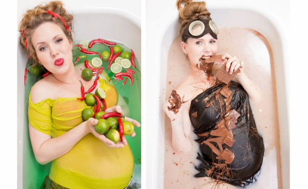 Η εγκυμοσύνη είναι ένα από τα πιο παράξενα ταξίδια στη ζωή της γυναίκας. Έχει συμβεί και σ’ εσάς οι λιγούρες της εγκυμοσύνης να σας κάνουν να θέλετε σαν τρελή να βουτήξετε κυριολεκτικά ολόκληρη στη σοκολάτα; Ή να βυθιστείτε σε μια λίμνη από φράουλες; Μια φωτογράφος έρχεται να ζωντανέψει τις επιθυμίες σας. Η Vaida Rasciute, που ζει στην Ιρλανδία και εργάζεται για την «Carrot Incorporations», έγινε ιδιαίτερα δημιουργική κατά τη διάρκεια της τρίτης εγκυμοσύνης της, όταν κυοφορούσε τη μονάκριβη κόρη της. Έτσι, αποφάσισε να ποζάρει η ίδια μέσα σε μια μπανιέρα γεμάτη με τροφές, που αποτελούσαν τις πιο έντονες λιγούρες της, από τις πιο γλυκές (σοκολάτα) μέχρι τις πιο πικάντικες (καυτερές πιπεριές). Προχώρησε, όμως, και λίγο παραπέρα, αφού καταπιάστηκε με ένα άλλο, πιο δραματικό σύμπτωμα της εγκυμοσύνης: Τις απότομες αλλαγές στη διάθεση. Πόζαρε, λοιπόν, πάλι σε μια μπανιέρα, αυτή τη φορά όμως πρωταγωνιστές ήταν τα λουλούδια, ανάλογα με τη διαφορετική συναισθηματική κατάσταση που βίωνε κάθε φορά. Δείτε τις εκπληκτικές φωτογραφίες της…