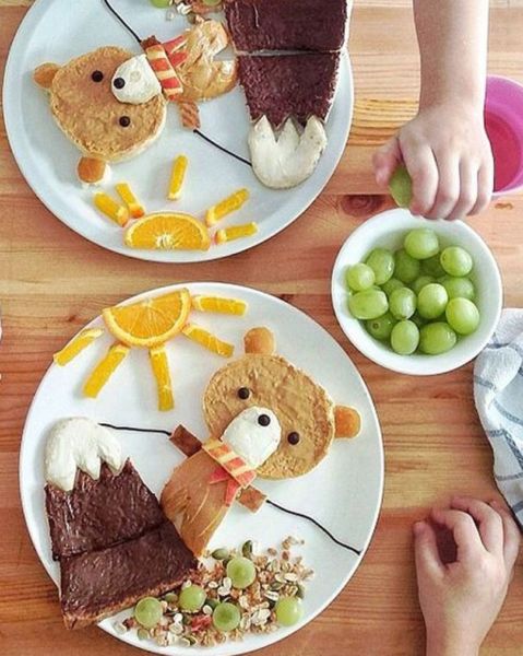 Όπως finger foods, ή σαντουιτσάκια σε σχήμα ζώου, με χρωματιστά φρούτα, τριγωνικά τυράκια και λαχανικά για γαρνιτούρα ή σχεδιάστε ένα χαμογελαστό πρόσωπο στην κορυφή του φαγητού χρησιμοποιώντας λωρίδες τυριού ή λωρίδες κάποιου άλλου αγαπημένου φαγητού