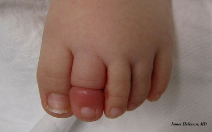 Εσείς βλέπετε τον κίνδυνο που μπορεί να απειλήσει το μωρό σας; Ο Σκοτ Γουόκερ από το Κάνσας των ΗΠΑ τον είδε και μάλιστα έγκαιρα. Ο τρυφερός μπαμπάς μοιράστηκε μέσω του Facebook μια φωτογραφία της κόρης του, Μόλι, σε μια προσπάθεια να προειδοποιήσει και άλλους γονείς για έναν κίνδυνο που μπορεί να απειλήσει το μωρό τους και συχνά περνά απαρατήρητος. Η φωτογραφία έχει γίνει viral, καθώς την έχουν κοινοποιήσει περισσότεροι από 20.000 χρήστες και έχει συγκεντρώσει περισσότερα από 23.000 σχόλια. Ενώ γευμάτιζε με την οικογένεια του, ο Σκοτ παρατήρησε ότι κάτι δεν πήγαινε καλά με το δεξί πόδι της Μόλι, η οποία γεννήθηκε τον περασμένο Σεπτέμβριο. Το κοριτσάκι ήταν ιδιαίτερα ανήσυχο και άρχισε να ζεσταίνεται υπερβολικά, οπότε η μητέρα της αποφάσισε να της βγάλει τις κάλτσες ώστε να δροσιστεί. «Τότε ήταν που παρατηρήσαμε το δάχτυλό της», γράφει ο πατέρας στο ποστ της 21ης Ιανουαρίου. Μια τρίχα ήταν σφιχτά τυλιγμένη γύρω από το δεύτερο δάχτυλο του ποδιού της Μόλι. Το φαινόμενο ονομάζεται περίσφιξη ή περιτύλιξη τρίχας (hair tourniquet) και μπορεί να αποτελέσει κίνδυνο για το μωρό, καθώς είναι πιθανό η τρίχα να τραυματίσει το ευαίσθητο δέρμα και να προκαλέσει πρόβλημα στην κυκλοφορία του αίματος. Η μητέρα τής Μόλι απομάκρυνε την τρίχα χρησιμοποιώντας τσιμπιδάκι και μεγεθυντικό φακό, ωστόσο υπήρχε ήδη τραύμα στο δάχτυλο του κοριτσιού. Όπως φαίνεται στη φωτογραφία, το δάχτυλο του μικρού κοριτσιού είναι κατακόκκινο και πρησμένο. Η φωτογραφία τραβήχτηκε περίπου 45 λεπτά αφού απομακρύνθηκε η τρίχα. «Ο γιατρός μού είπε πάντα να τσεκάρω τα δάχτυλα των ποδιών εάν το μωρό είναι ανήσυχο και δεν ηρεμεί με τίποτα», αναφέρει καταλήγοντας ο Σκοτ στο ποστ του. Μελέτη που δημοσιεύεται στην επιθεώρηση του Βασιλικού Κολεγίου Χειρουργών της Αγγλίας (Annals of The Royal College of Surgeons of England) χαρακτηρίζει την περίσφιξη ως «στραγγαλισμό των δαχτύλων» και αναφέρει ότι πρόκειται για επείγουσα κατάσταση, καθώς η καθυστέρηση στην αναγνώριση και την αντιμετώπιση του προβλήματος μπορεί να οδηγήσει σε ισχαιμία (μειωμένη ροή αίματος) και απώλεια του δαχτύλου. Μελέτη ερευνητών από την Τουρκία αναφέρει ότι η περίσφιξη μπορεί να παρατηρηθεί στα δάχτυλα χεριών και ποδιών ή ακόμη και στα γεννητικά όργανα. Πηγή:onmed.gr