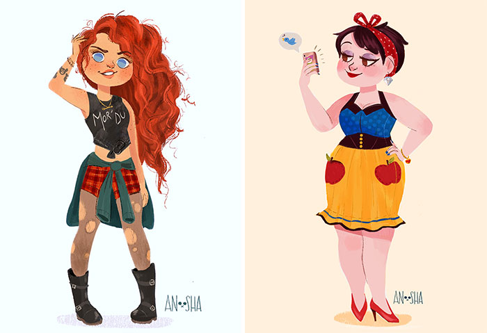 Η νεαρή εικονογράφος παιδικών βιβλίων και κινουμένων σχεδίων Anoosha Syed μας παρουσιάζει εκ νέου τις αγαπημένες μας πριγκίπισσες κινουμένων σχεδίων της Disney σε μια πιο… σύγχρονη εκδοχή τους.