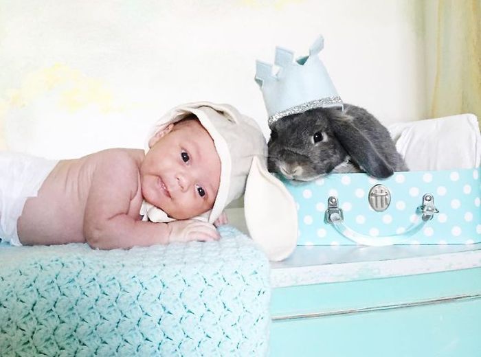 Φωτογραφίες: Νεογέννητο ποζάρει με το αγαπημένο του κουνελάκι