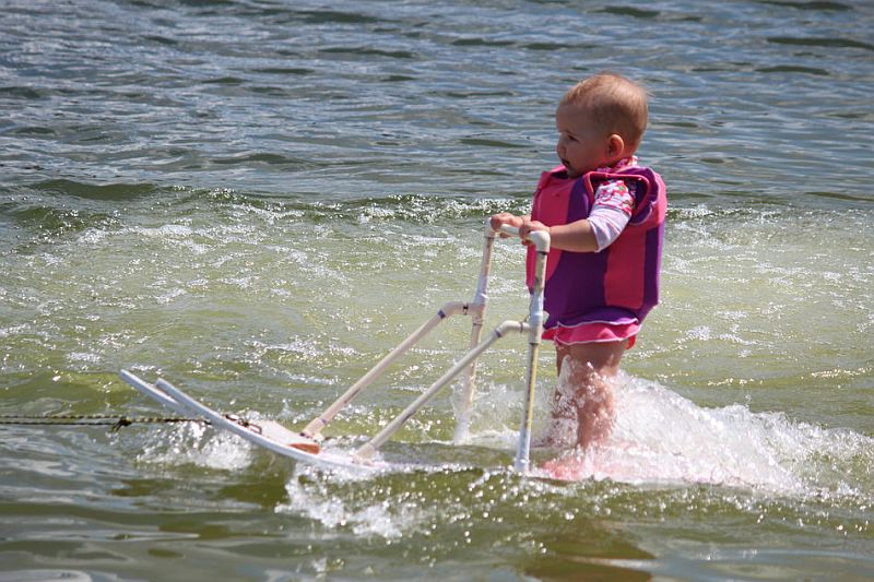 Σύμφωνα με τη Daily Mail, η μικρή φόρεσε μικρά πέδιλα του σκι που συνδέονταν μεταξύ τους με ένα κομμάτι ξύλο. Φορώντας το σωσίβιό της κρατιόταν από μία λαβή που ήταν συνδεδεμένη με τα πέδιλα του σκι, μία τεχνική που χρησιμοποιείται και σε ανθρώπους με κινητικά προβλήματα που θέλουν να απολαύσουν το αγαπημένο τους σπορ. Απολαύστε την!